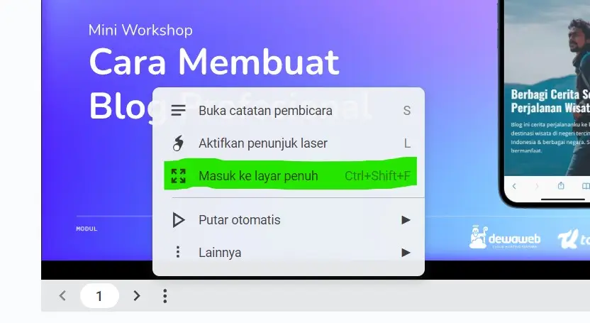 Untuk memudahkan kawan Tanpa Koding agar tidak scroll halaman ke bawah terlalu panjang, saya gunakan Google Slide yang saya tempel di artikel ini. Dan kamu bisa gunakan fitur layar penuh dengan mengklik titik 3 di bagian bawah frame sehingga keluar pilihan menu seperti gambar di atas.