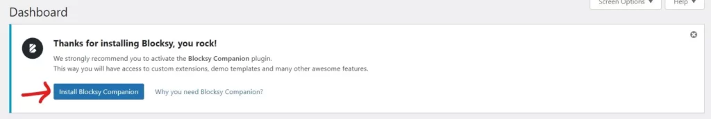 - Install plugin Blocksy Companion (bisa langsung klik tombol “Install Blocksy Companion” atau Plugin > Add new lalu cari plugin dengan mengetik kata ‘Blocksy Companion’ di kolom pencarian sebelah kanan atas. Setelah muncul Blocksy Companion, klik Install & Activate.